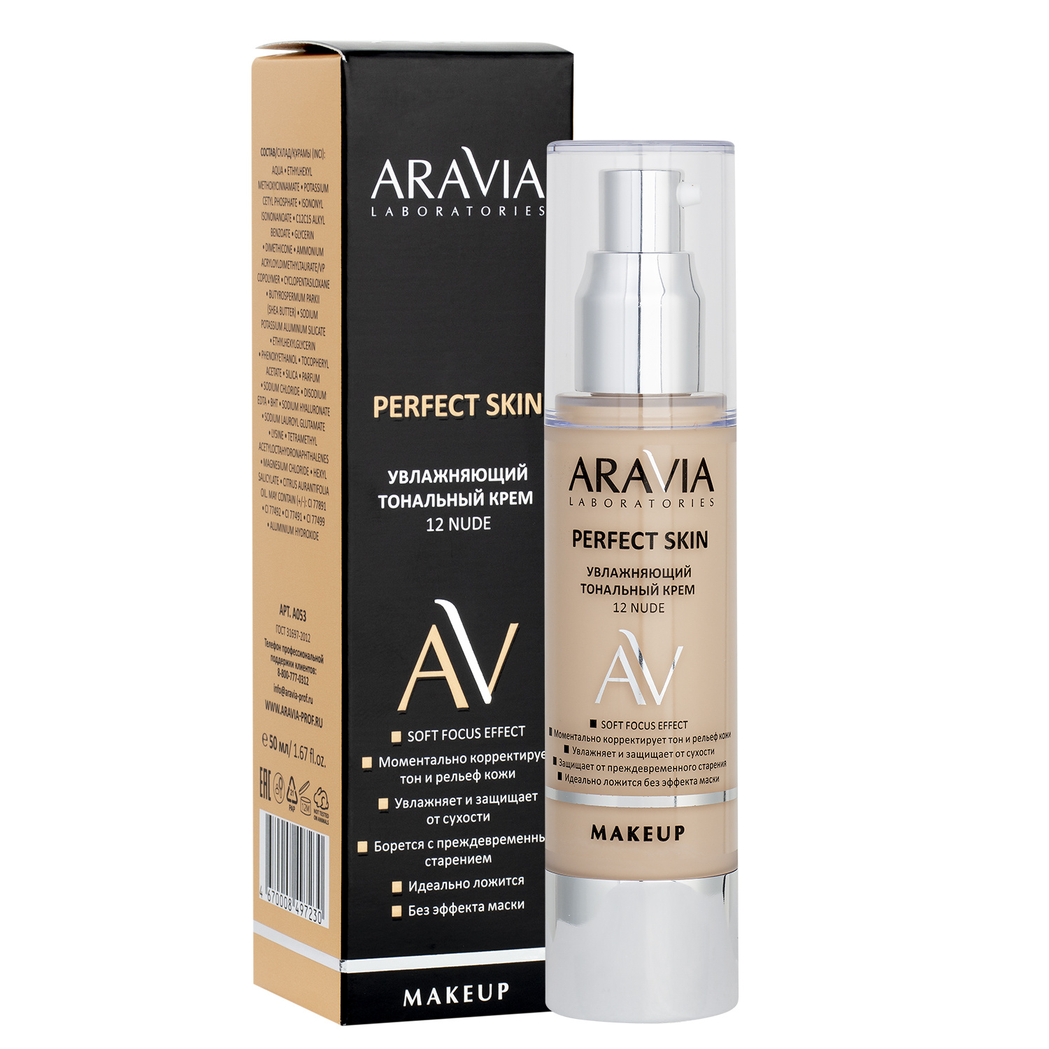 "ARAVIA Laboratories" Увлажняющий тональный крем 12 Nude Perfect Skin, 50 мл