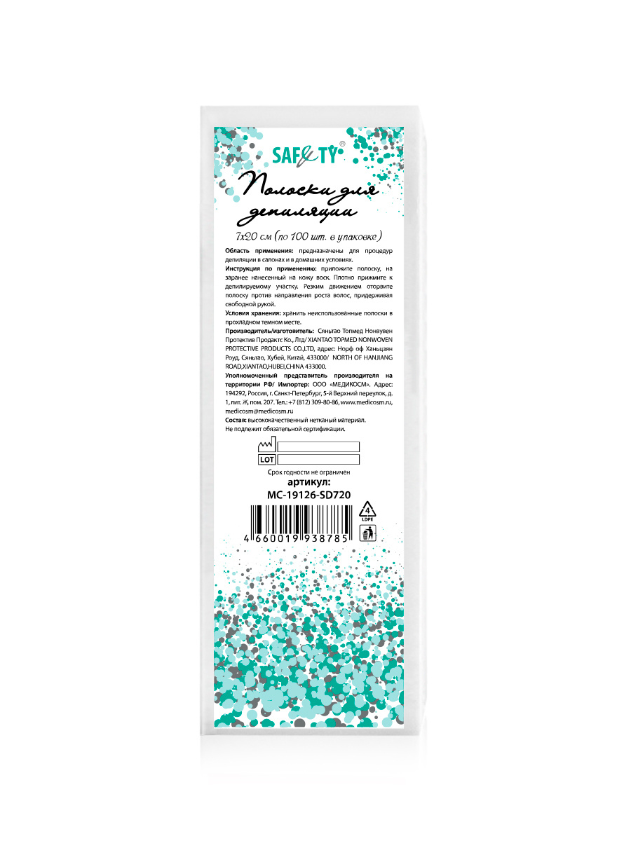 Полоски для депиляции белые 7х20 см SAFETY (полиэстер), 100 шт/упк