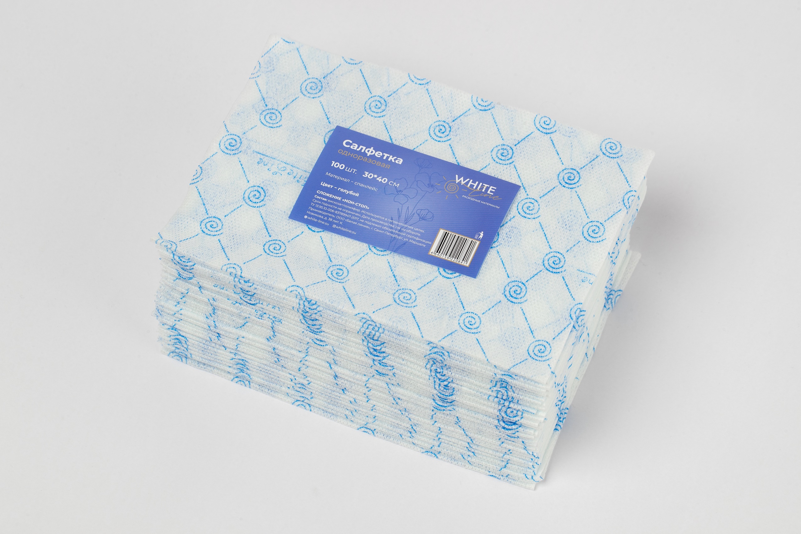 Салфетка 30х40 см голубая White Line (спанлейс, 50 г/м), 100 шт/упк