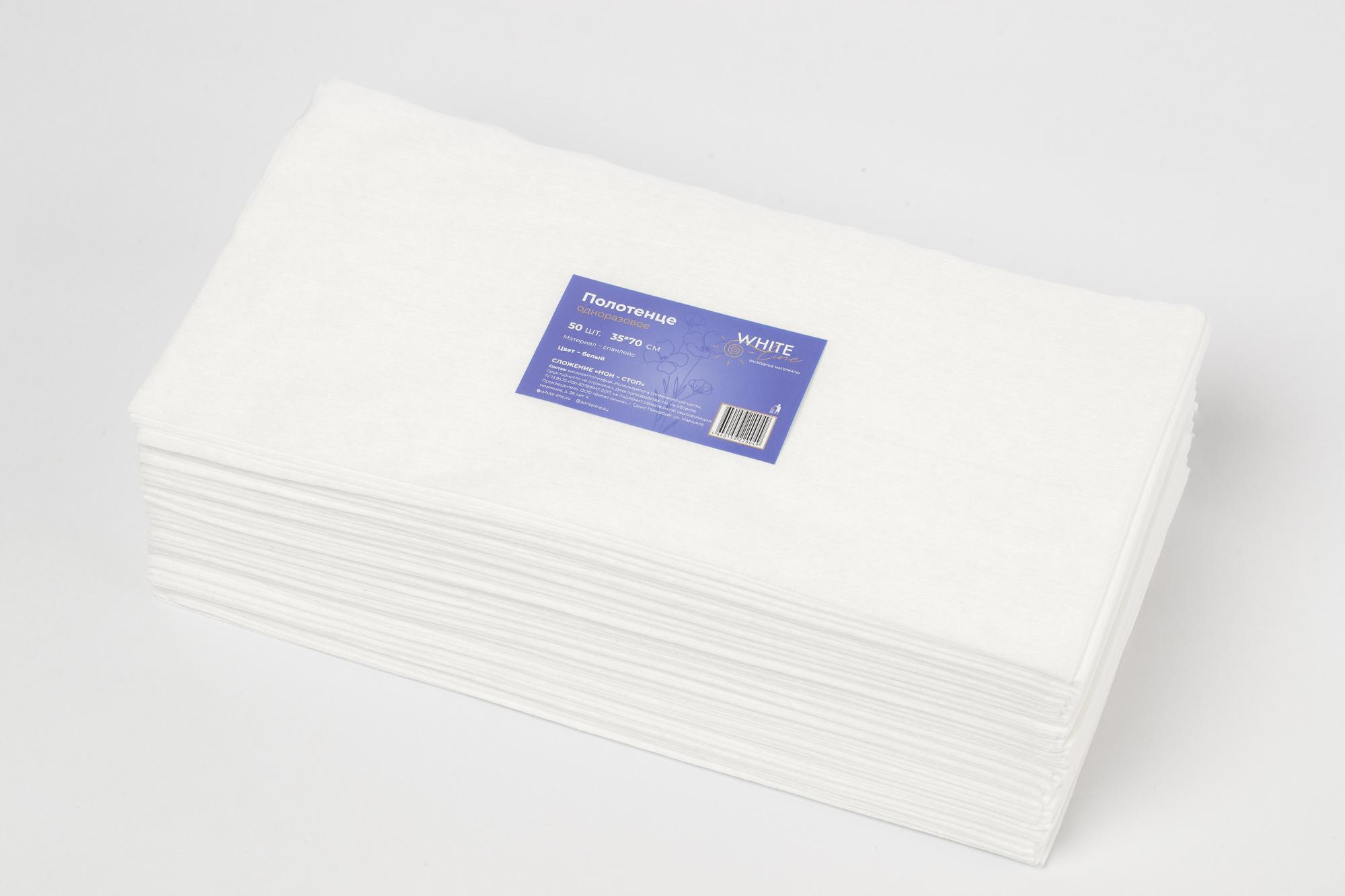 Полотенце 35х70 см белое White Line (спанлейс, 40 г/м), 50 шт/упк