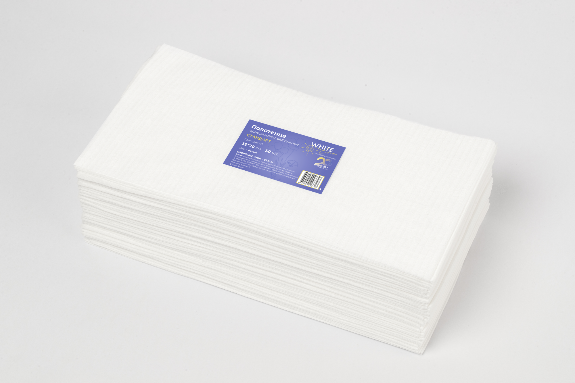 Полотенце 35х70 см белое White Line (стандарт, спанлейс, 45 г/м, вафельное) 50 шт/упк