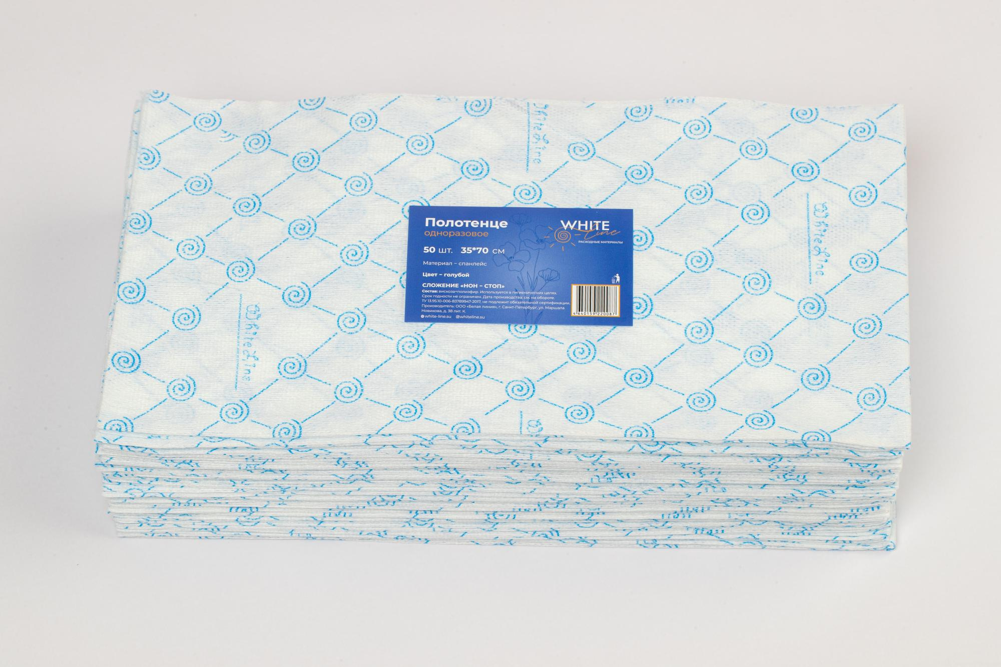 Полотенце 35х70 см голубое White Line (спанлейс, 50 г/м), 50 шт/упк