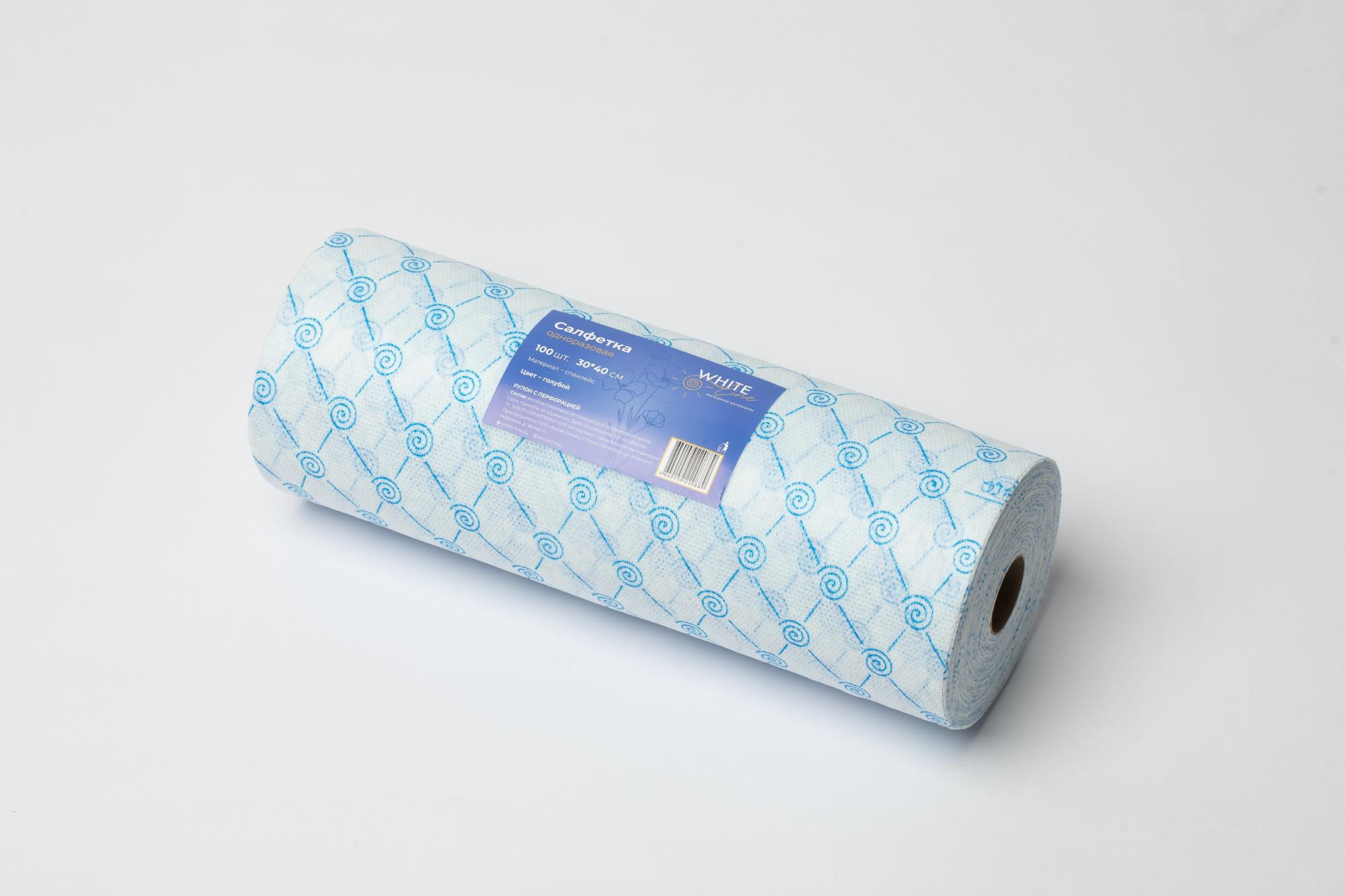 Салфетка 30х40 см голубая White Line (спанлейс, 50 г/м), 100 шт/рул