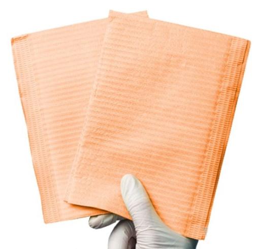 Салфетки оранжевые ламинир Wismed 33х45 см 2-х слойные (рифленая бумага/полиэтилен), 500 шт/упак