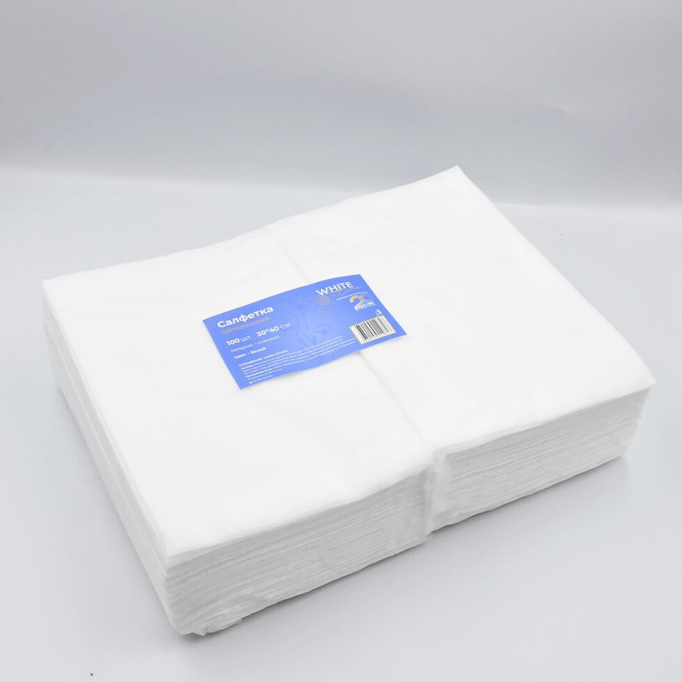 Салфетка 30х40 см белая White Line (спанлейс, 40 г/м), 100 шт/упк