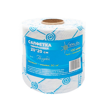 Салфетка 20х20 см голубая White Line (спанлейс, 50 г/м), 100 шт/рул