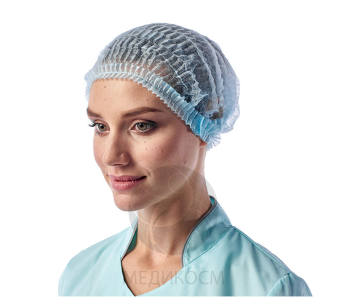 Шапочка медицинская одноразовая из нетканого материала типа "Шарлотта" Голубая MEDICOSM, 100 шт/упк