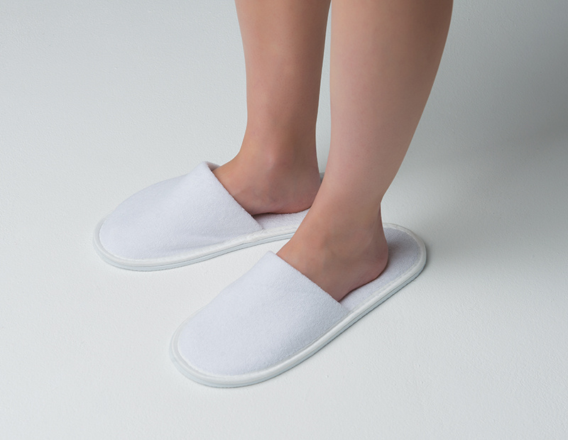 Тапочки белые махровые эконом закрытый мыс антискользящие Чистовье, 1 пара