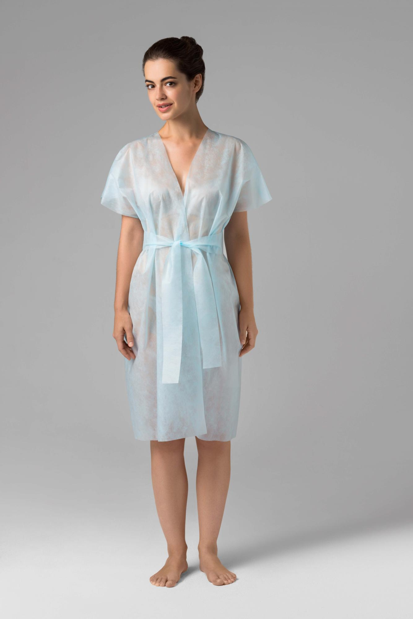 Халат-кимоно голубой Чистовье (без рукавов, SMS, люкс), 10 шт/упк
