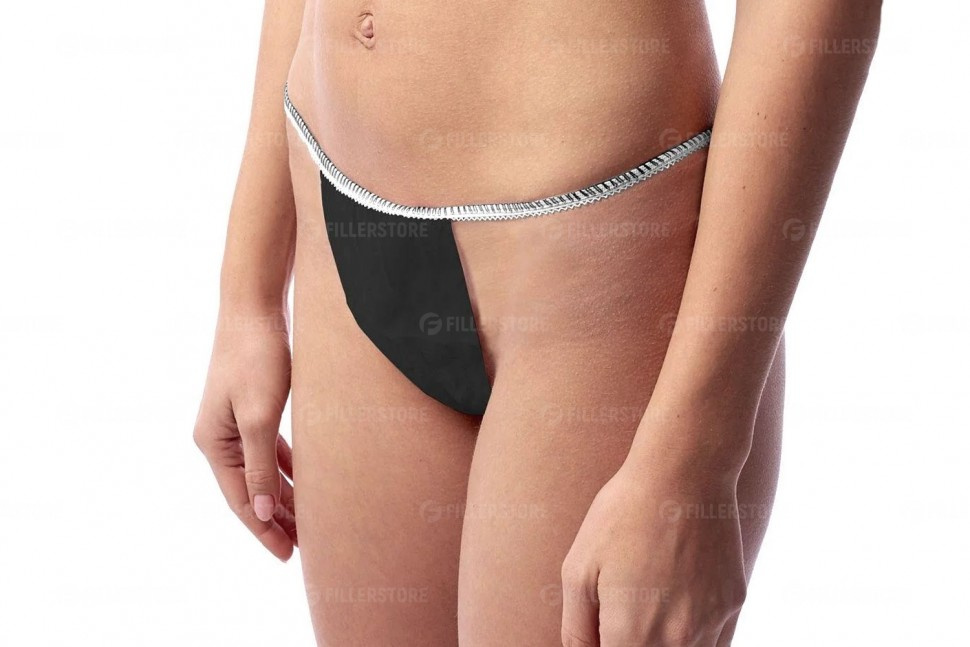 Трусики Tanga женские черные (спанбонд, размер универсальный) SAFETY, 25 шт/упк