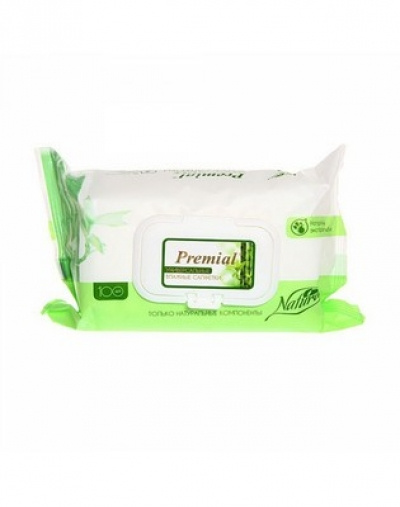 Салфетки влажные с экстрактом бамбука Premial Natural, 100 шт