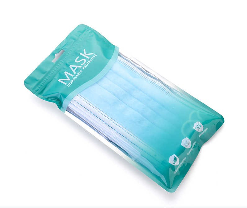 Маска защитная трехслойная голубая на резинках (пакет) 10 шт