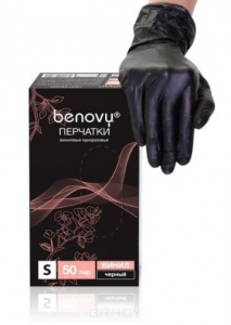 Перчатки виниловые ЧЕРНЫЕ неопудренные ПВХ (6-7), 4,8гр, S BENOVY