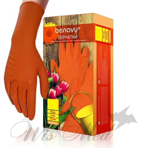 Перчатки нитриловые особо прочные удлиненные ОРАНЖЕВЫЕ BENOVY HIGH RISK размер M 25 пар