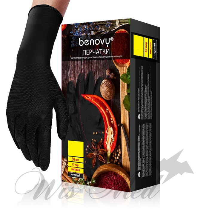 Перчатки нитриловые особо прочные удлиненные ЧЕРНЫЕ BENOVY HIGH RISK размер L 25 пар