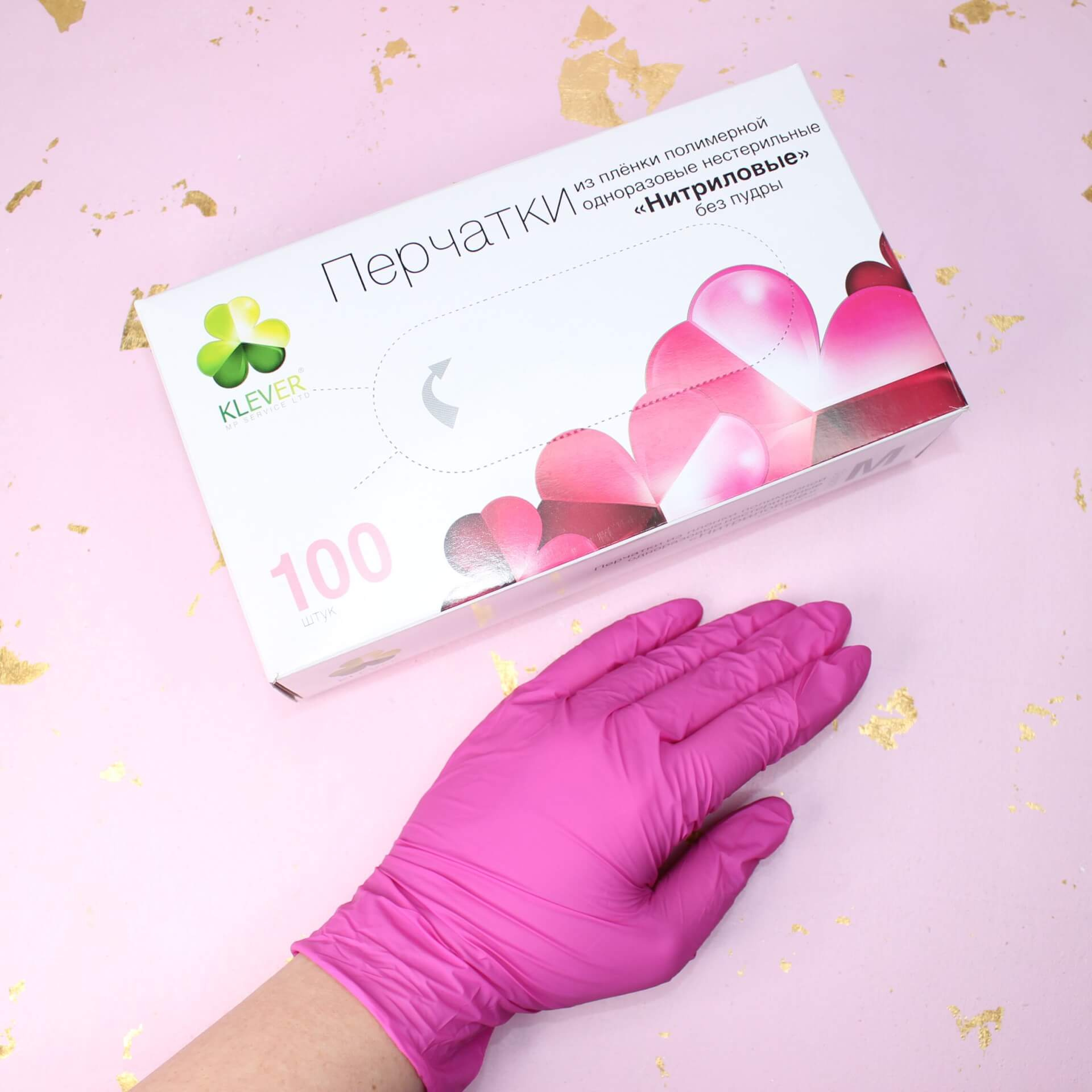 Перчатки нитриловые Klever РОЗОВЫЕ размер M (50 пар)