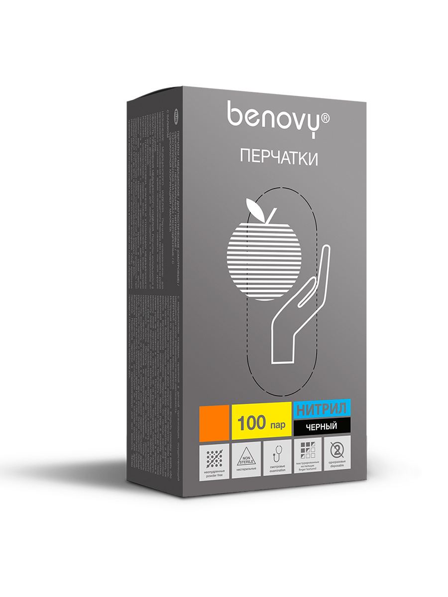 Перчатки нитриловые BENOVY Q ЧЕРНЫЕ размер S (100 пар)