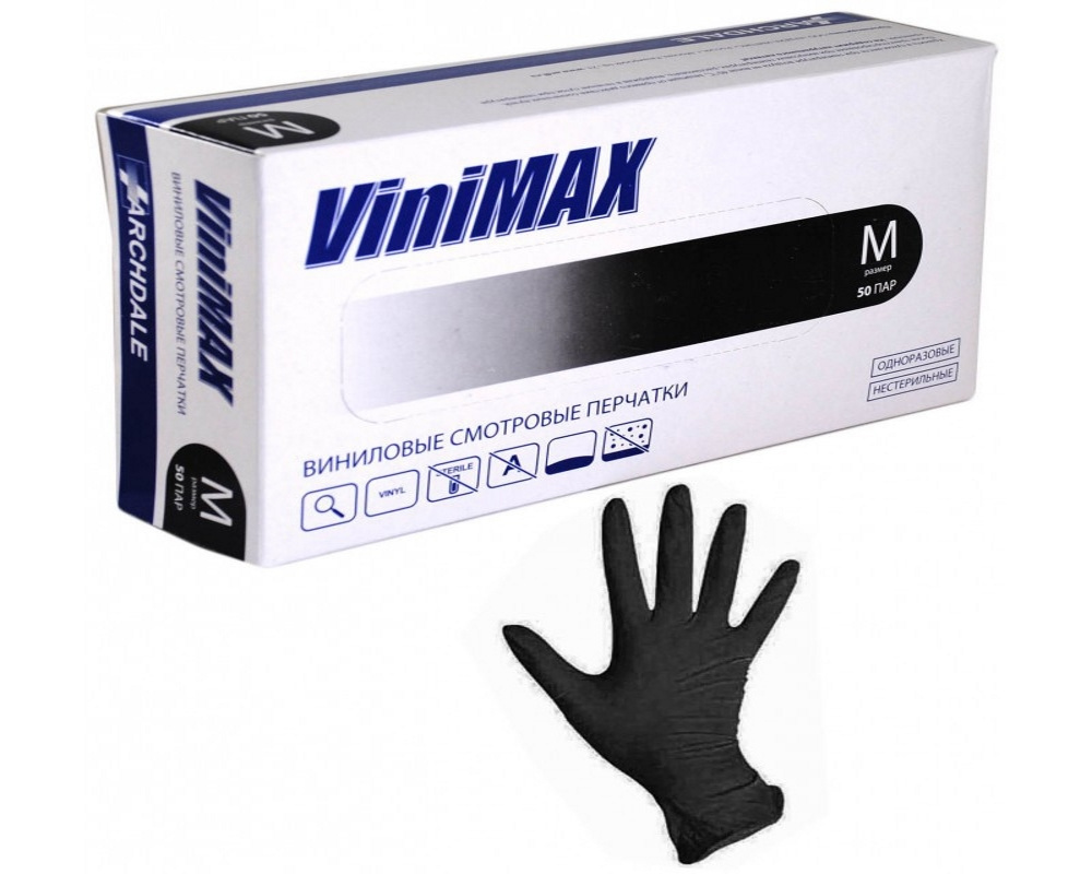 Перчатки виниловые ЧЕРНЫЕ размер S VINIMAX (50 пар)