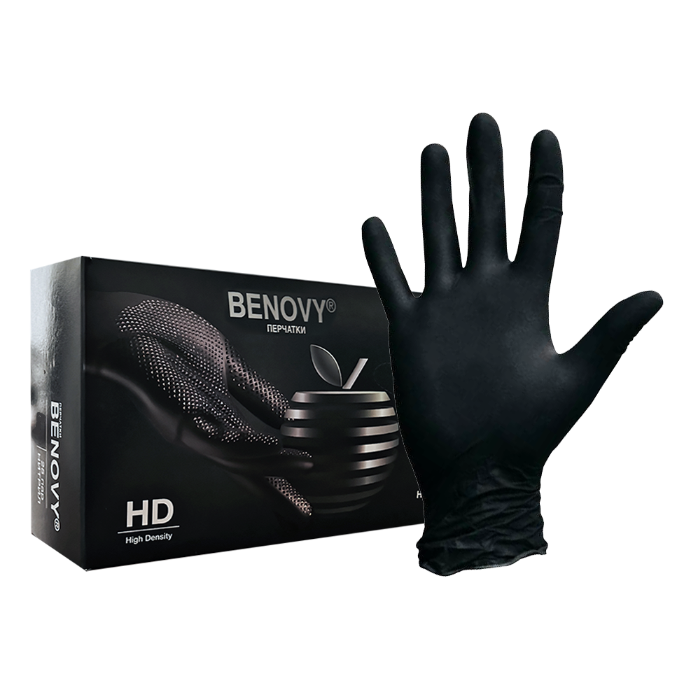 Перчатки нитриловые BENOVY ЧЕРНЫЕ размер XS, 50 пар/упк