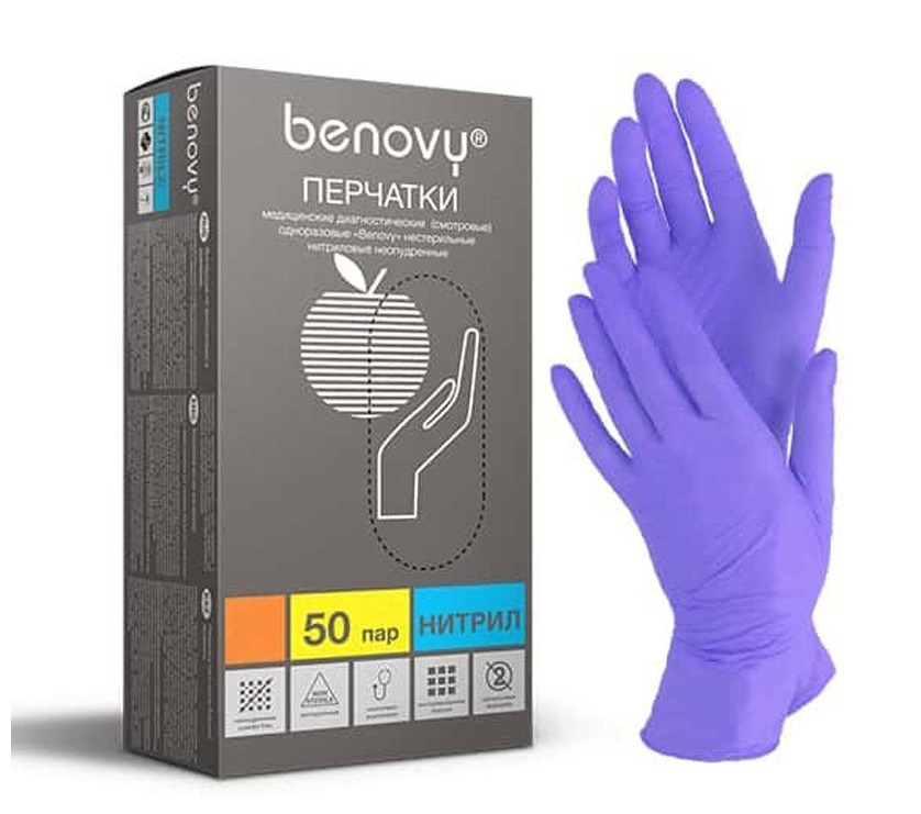 Перчатки нитриловые СИРЕНЕВЫЕ BENOVY размер L, 50 пар/упк