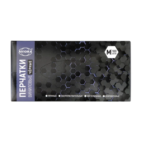 Перчатки виниловые ЧЕРНЫЕ AVIORA размер M, 50 пар/упк