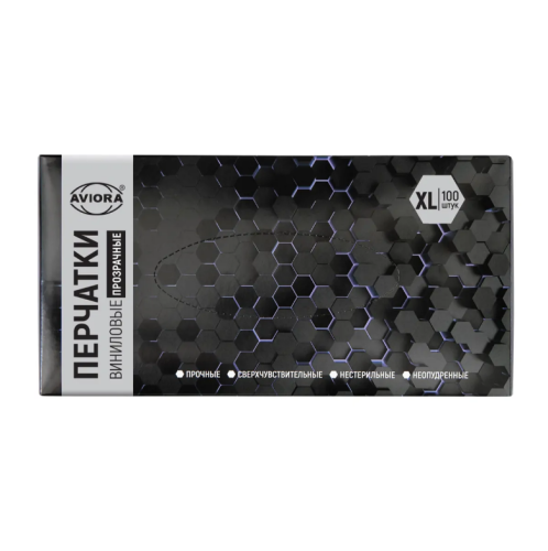 Перчатки виниловые ПРОЗРАЧНЫЕ AVIORA размер XL, 50 пар/упк