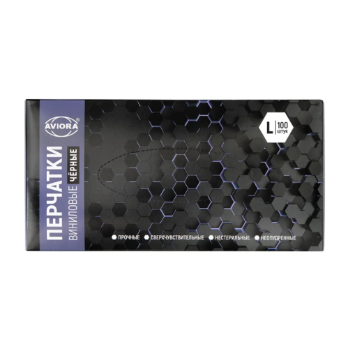 Перчатки виниловые ЧЕРНЫЕ AVIORA размер L, 50 пар/упк