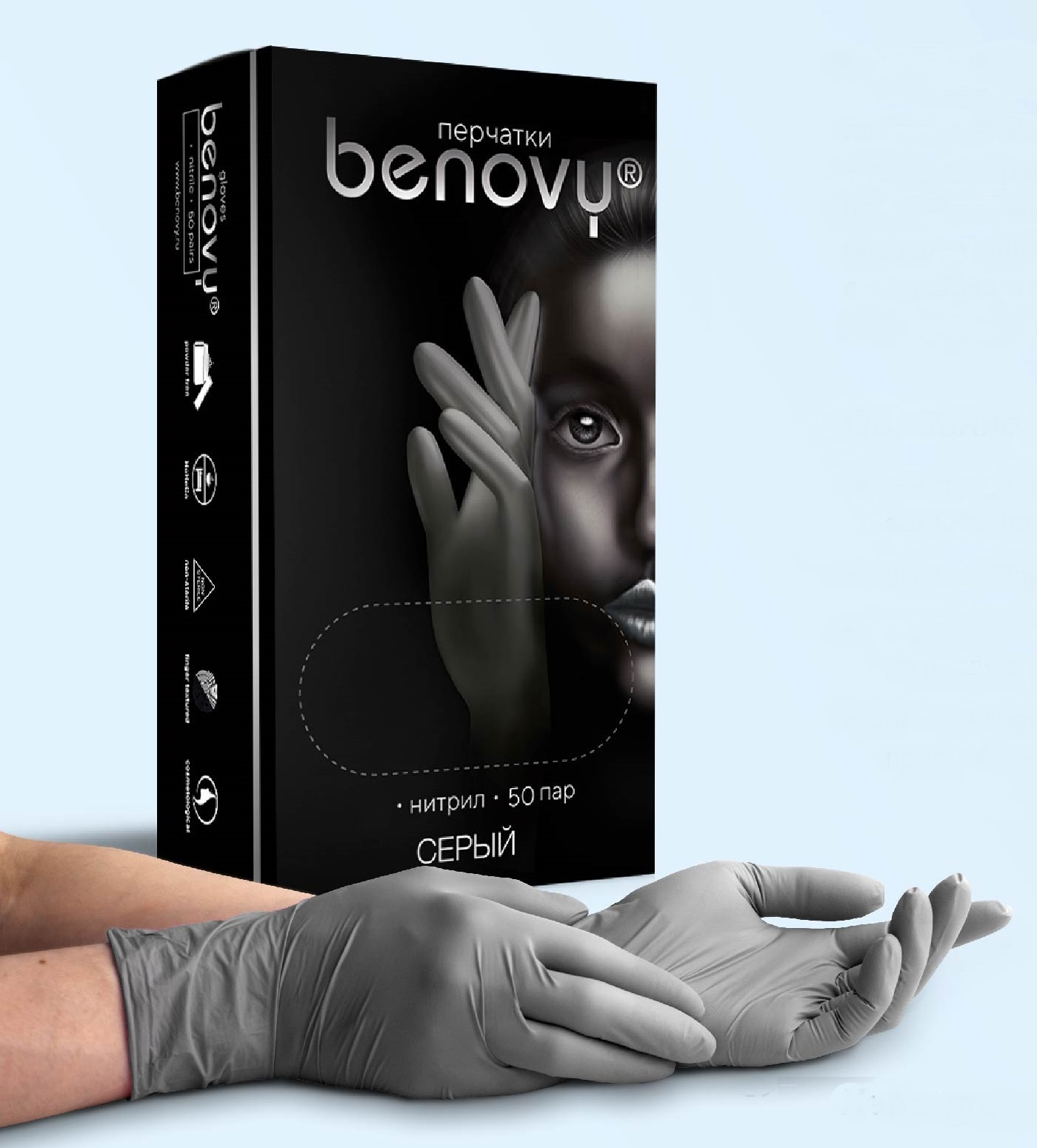 Перчатки нитриловые BENOVY Q СЕРЫЕ размер XS, 50 пар/упк