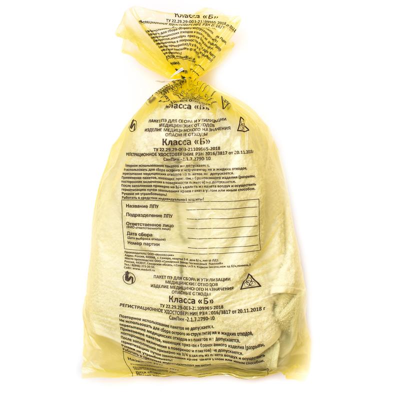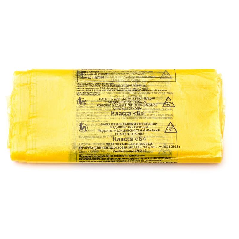 Пакет желтый для медицинских отходов 500x600 мм Винар (класс Б, 30 литров), 100 шт/упк