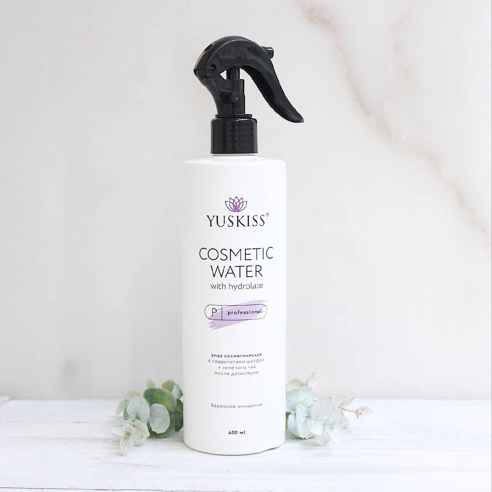 Вода косметическая с гидролатами шалфея и зеленого чая после депиляции YUSKISS, 400 мл