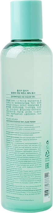 Увлажняющий тонер для лица Aloe Soothing Essence 98% Toner Holika Holika, 250 мл
