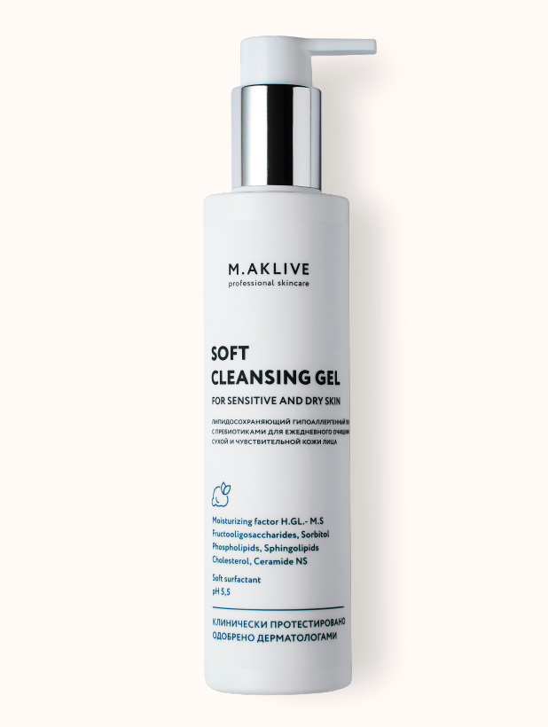 Мягкий гель для умывания чувствительной и сухой кожи лица M.AKLIVE, 200 мл