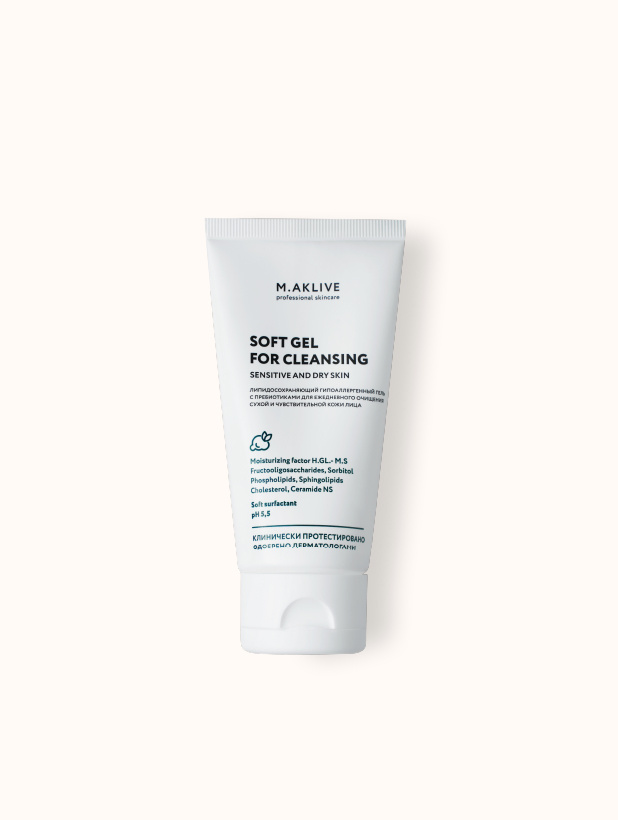 Мягкий гель для умывания чувствительной и сухой кожи лица M.AKLIVE, 50 мл