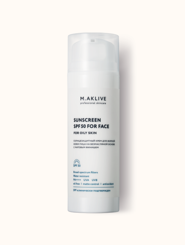 Солнцезащитный крем SPF50 для жирной кожи лица M.AKLIVE, 150 мл PROF