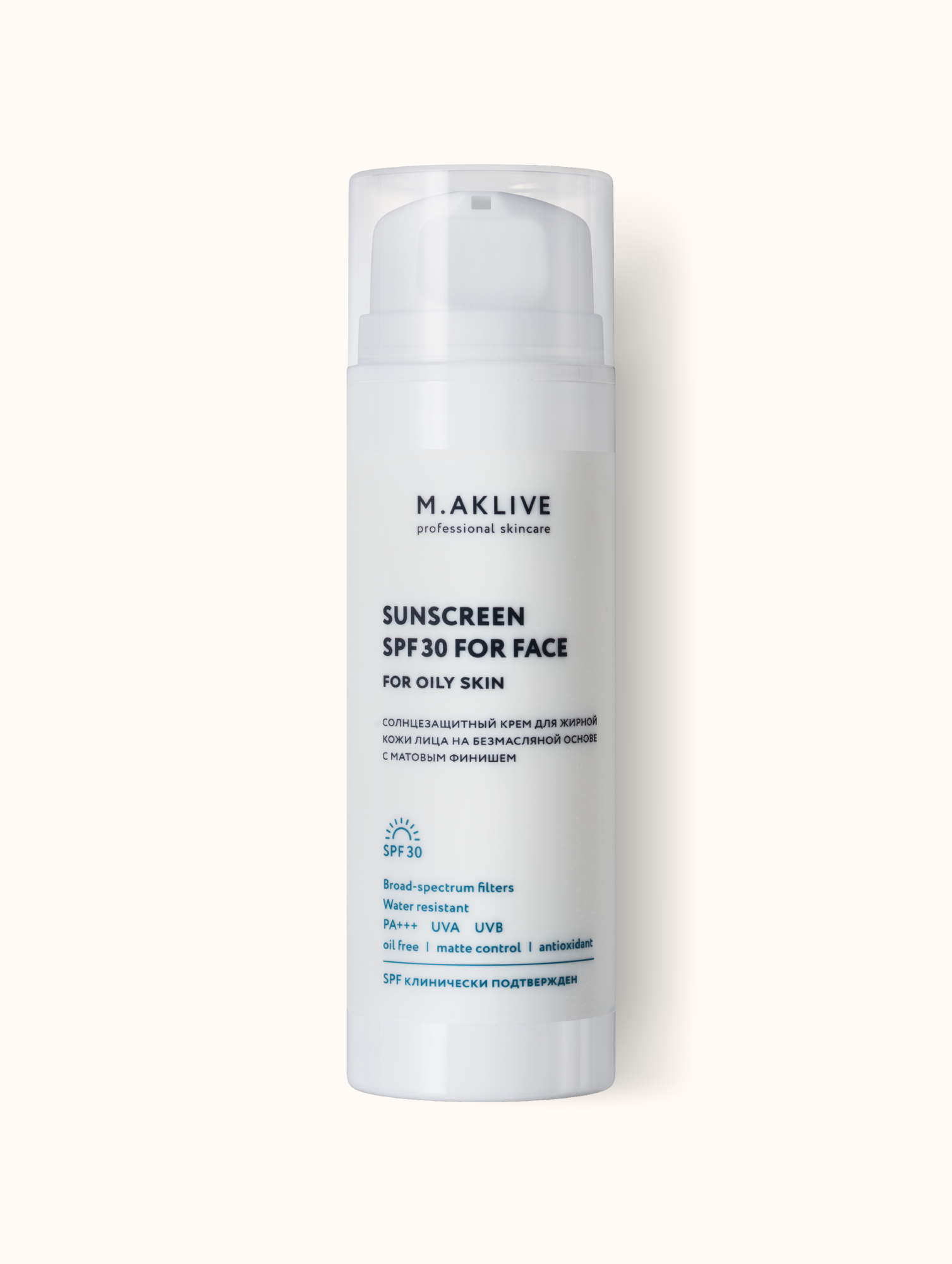 Солнцезащитный крем SPF30 для жирной кожи лица M.AKLIVE, 150 мл PROF