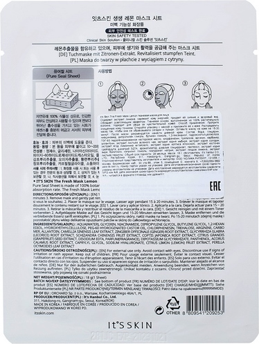 Тонизирующая тканевая маска с лимоном The Fresh Mask Sheet Lemon It's Skin, 1 шт