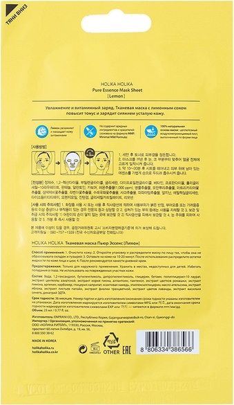 Тонизирующая тканевая маска Pure Essence Mask Sheet Lemon, лимон Holika Holika, 1 шт/упк