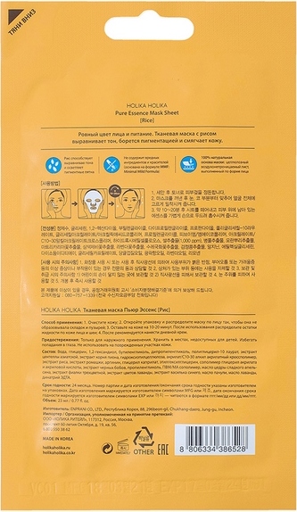 Тканевая маска против пигментации Pure Essence Mask Sheet Rice, рис Holika Holika, 1 шт/упк