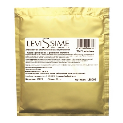 Альгинатная омолаживающая абрикосовая маска с ретинолом и фолиевой кислотой LeviSsime, 30 гр