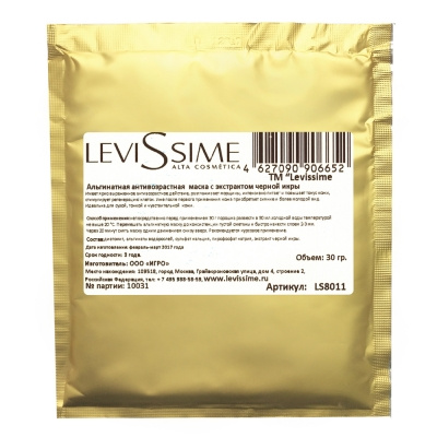 Альгинатная антивозрастная маска с экстрактом черной икры LeviSsime, 30 гр
