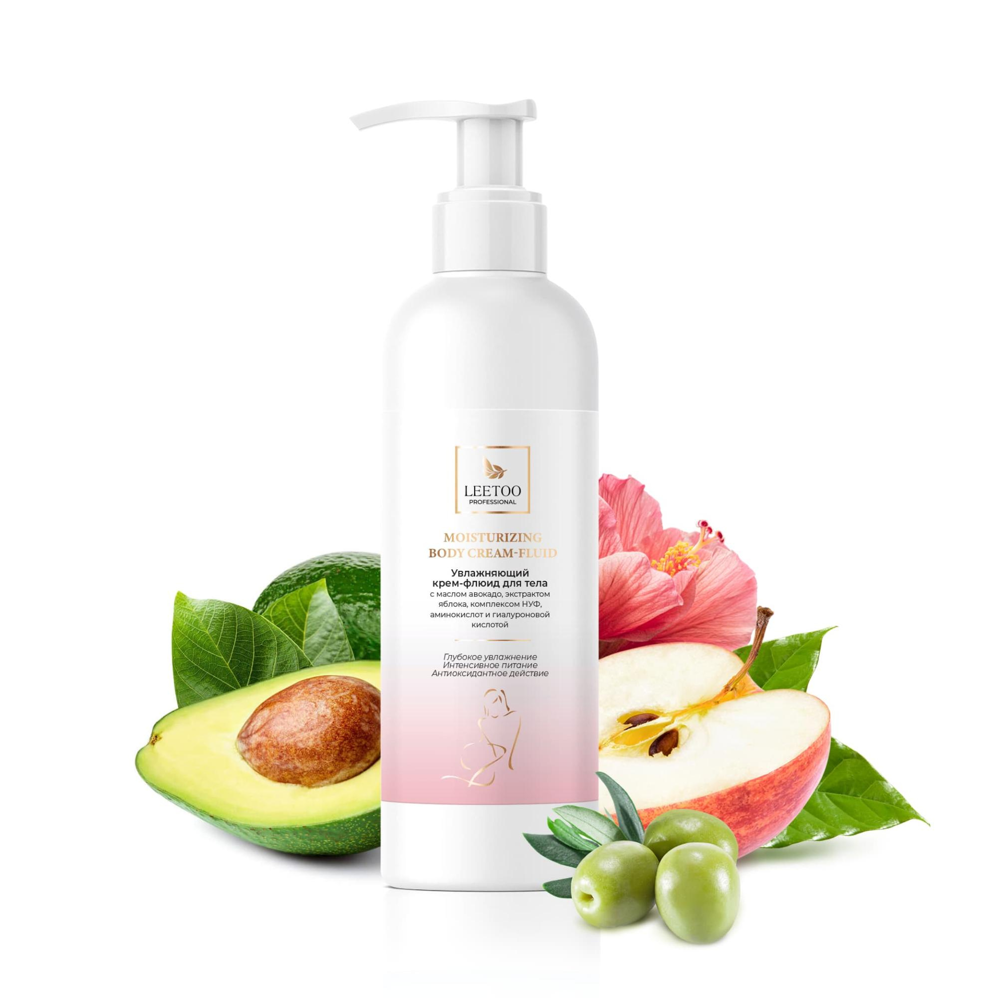 LEETOO Увлажняющий крем-флюид для тела с малом авокадо, экстрактом брусники, комплексом НУФ и гиалуроновой кислотой, 200 мл
