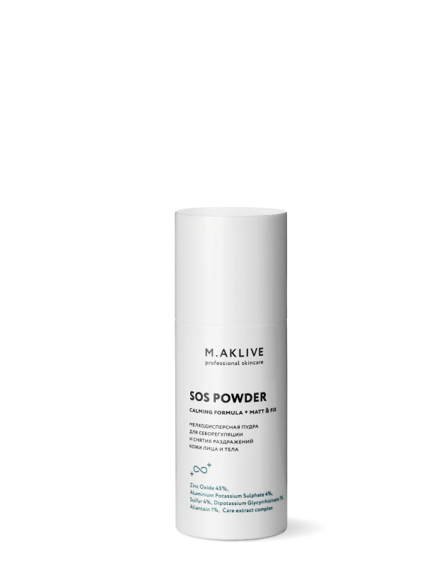 Себорегулирующая SOS пудра «Успокаивающая формула + матирование и фиксация» M.AKLIVE, 50 гр