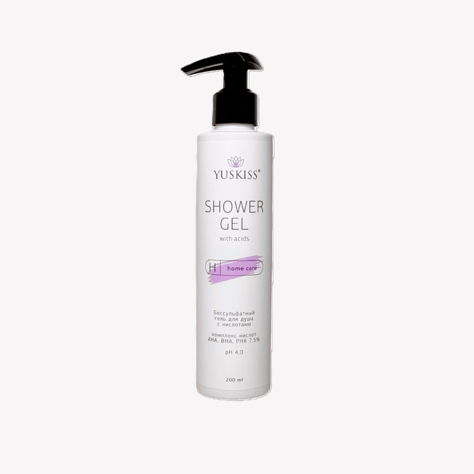 Бессульфатный гель для душа с кислотами AHA, BHA, PHA 7,5% YUSKISS, 200 мл