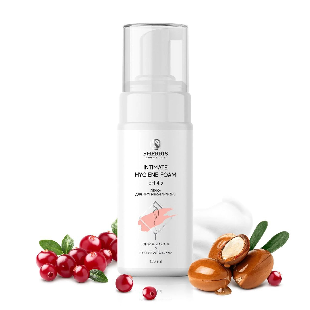 Пенка для интимной гигиены с клюквой и арганой и молочной кислотой SHERRIS, 150 мл