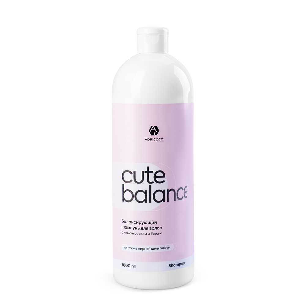 Балансирующий шампунь для волос ADRICOCO CUTE BALANCE с лемонграссом и бораго, 1000 мл