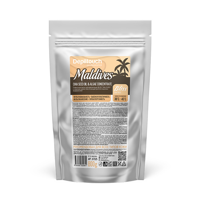 Воск в гранулах Depiltouch Professional MALDIVES серии BLISS с маслом семян чиа и концентратом морских водорослей, 800 гр