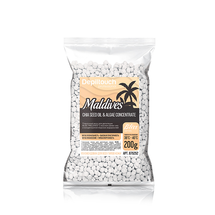 Воск в гранулах Depiltouch Professional MALDIVES серии BLISS с маслом семян чиа и концентратом морских водорослей, 200 гр