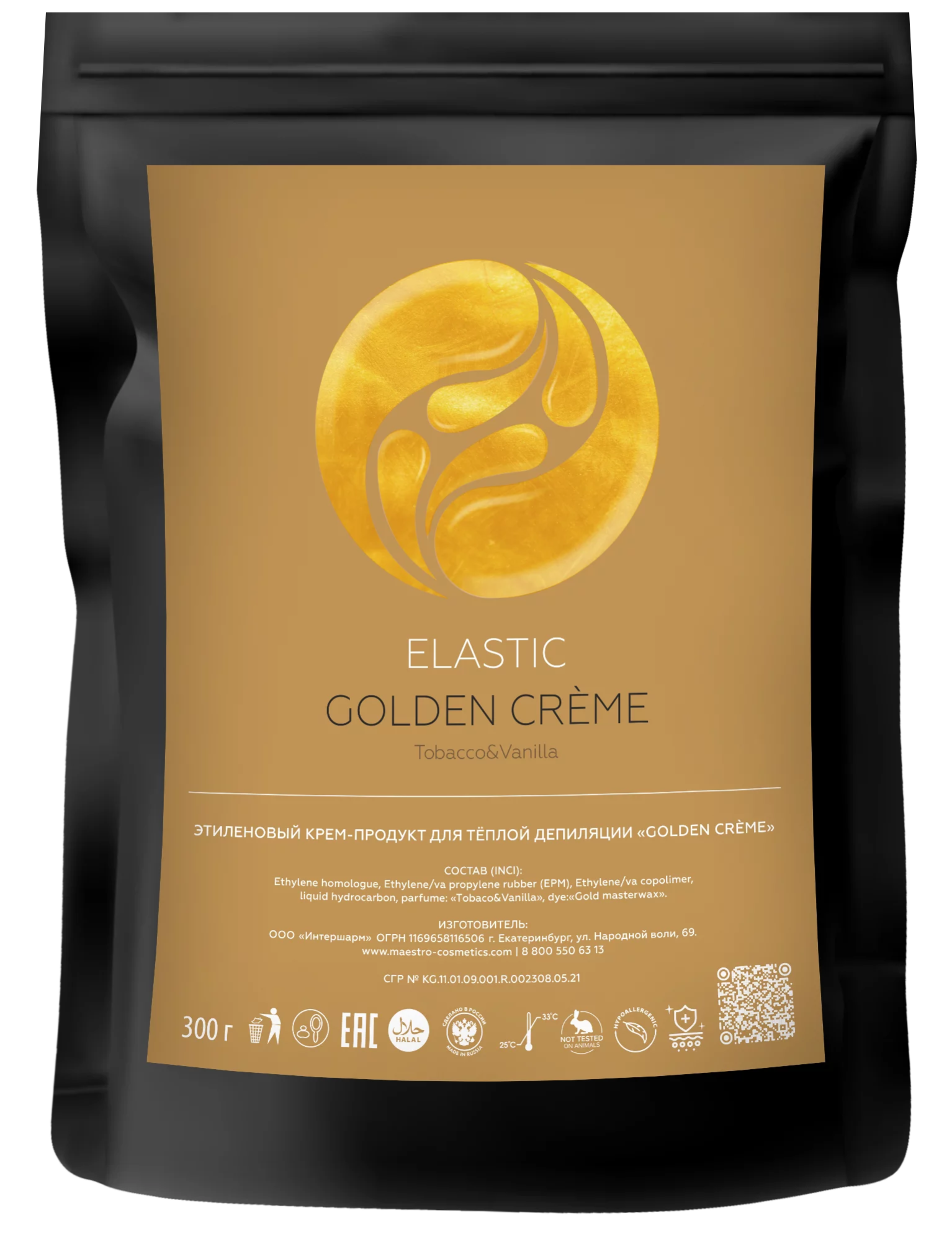 Этиленовый продукт для теплой депиляции Golden Creme Tobacco&Vanilla Maestro Cosmetics, 300 гр