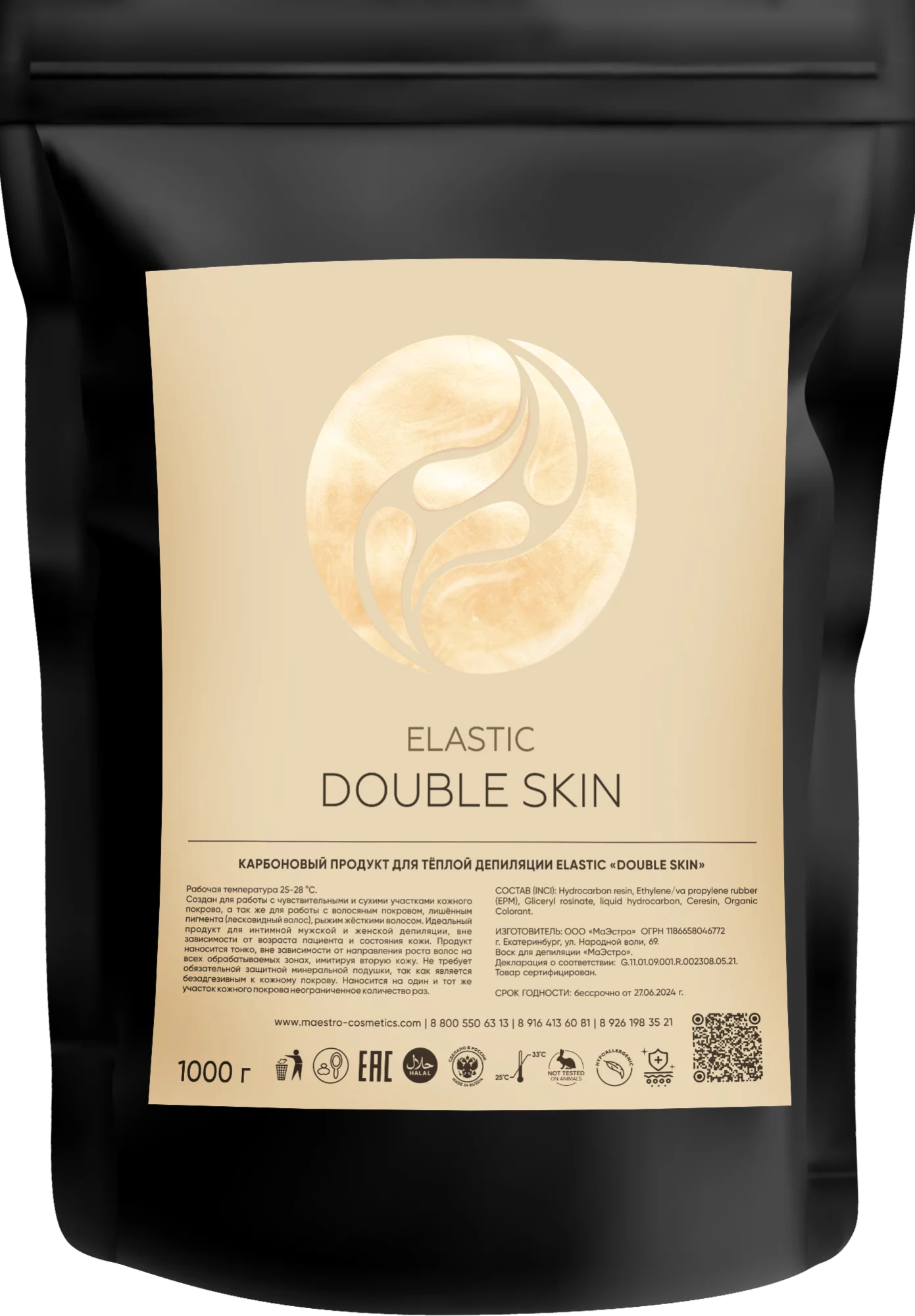 Карбоновый продукт для теплой депиляции Elastic Double Skin Maestro Cosmetics, 1000 гр