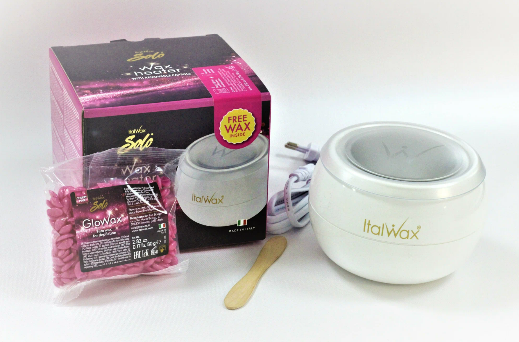 Набор для депиляции Italwax Solo Glowax SM, воскоплав, воск Glowax Вишня, шпатель, 1 шт.